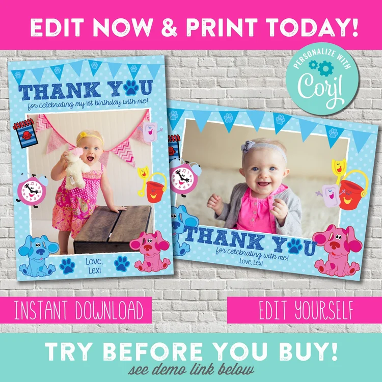 Blues Clues Thank You Card Photo Thank You Editable Diy Invitationcelebration Com